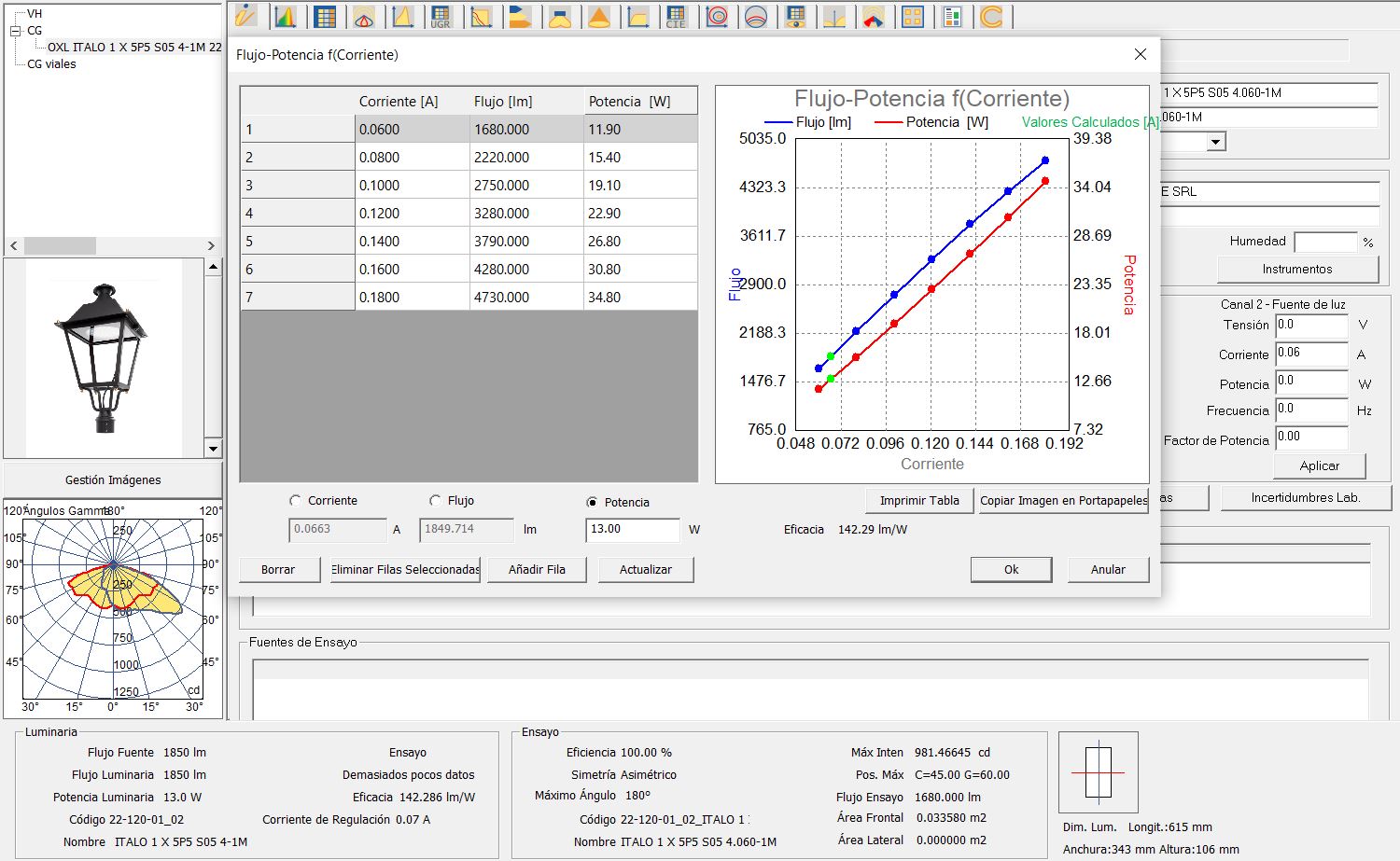 La mesure avec un Gonio-spectroradiomètre simule la mesure d’une section portable et une sphère d’intégration, être la mesure la plus complète et unique qui permet d’analyser les aberrations chromatiques, la dispersion de couleur et les différentes valeurs de couleur que la température de couleur dans chaque angle Gamma.